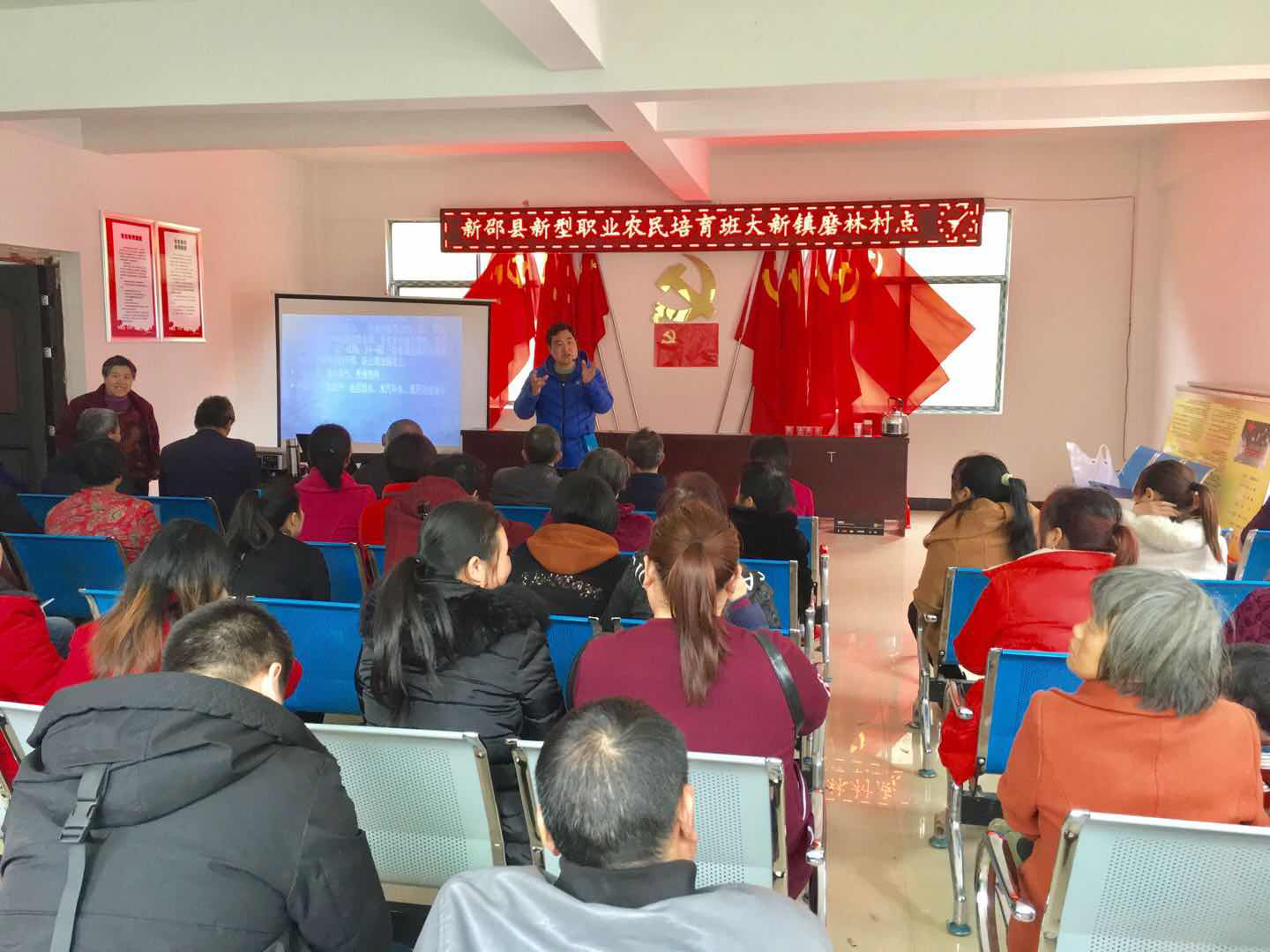 3月27日,新邵县新型职业农民培训班在大新镇磨林村开班授课,县农业局、大新镇党委和帮扶单位新邵县职中精心安排部署,组织建档立卡贫困户、党员组长及种养能手免费参加培训