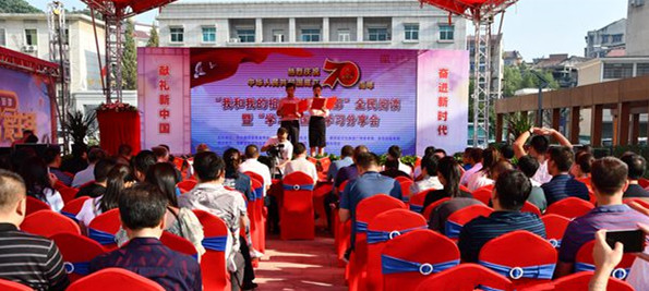 为深入学习贯彻习近平新时代中国特色社会主义思想,进一步提高全民思想道德素质和科学文化素质,推进省级文明县城创建,9月29日,新邵县举行庆祝中华人民共和国成立70周年“我和我的祖国·书香新邵”全民阅读活动启动式,同时举行“学习强国”学习分享会。