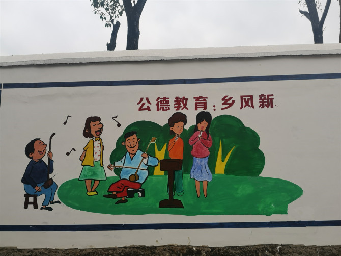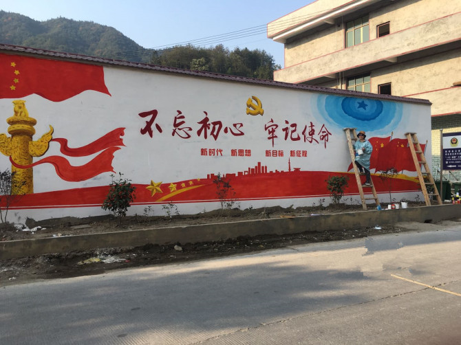 文化墙作为农村文化建设、传播文明风尚的重要载体,以群众喜闻乐见、通俗易懂的方式,引导农民树新风、倡新风,围绕社会公德教育、“不忘初心、牢记使命”主题教育、社会主义核心价值观、传统文化等内容,积极践行乡村振兴发展战略,倡导文明道德新风尚,让广大村民在欣赏墙绘时能在潜移默化中受到教育和影响,促进广大村民自觉遵守社会公德,树立卫生整洁、勤俭节约、勤劳致富、崇尚科学、遵纪守法、诚实守信、崇德向善新风尚,提高自身修养。