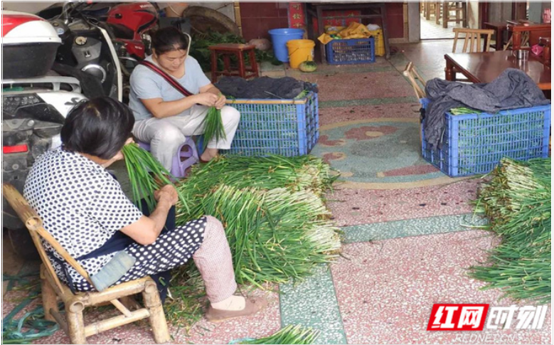 眼下正是韭菜大量上市的时期,财树村韭菜基地每天可收割2.5吨左右的新鲜韭菜。基地农户们将收割好的韭菜经过简单处理后,送到附近村民家中,请他们帮忙整理挑选。然后,将挑选出的合格韭菜快速运往邵阳各大菜市场。由于选菜工作不仅不用出家门,而且也比较轻松,所以目前十几名选菜“大军”中,不乏贫困户和六七十岁的老人,还有残疾人。他们选菜按两毛钱一斤计酬,每人每天能拿到40—50元工资。该村不少贫困户表示,基地离家近,每天在基地做完事后就能回家干农活、做家务,照顾家庭,比在外面打工方便多了。