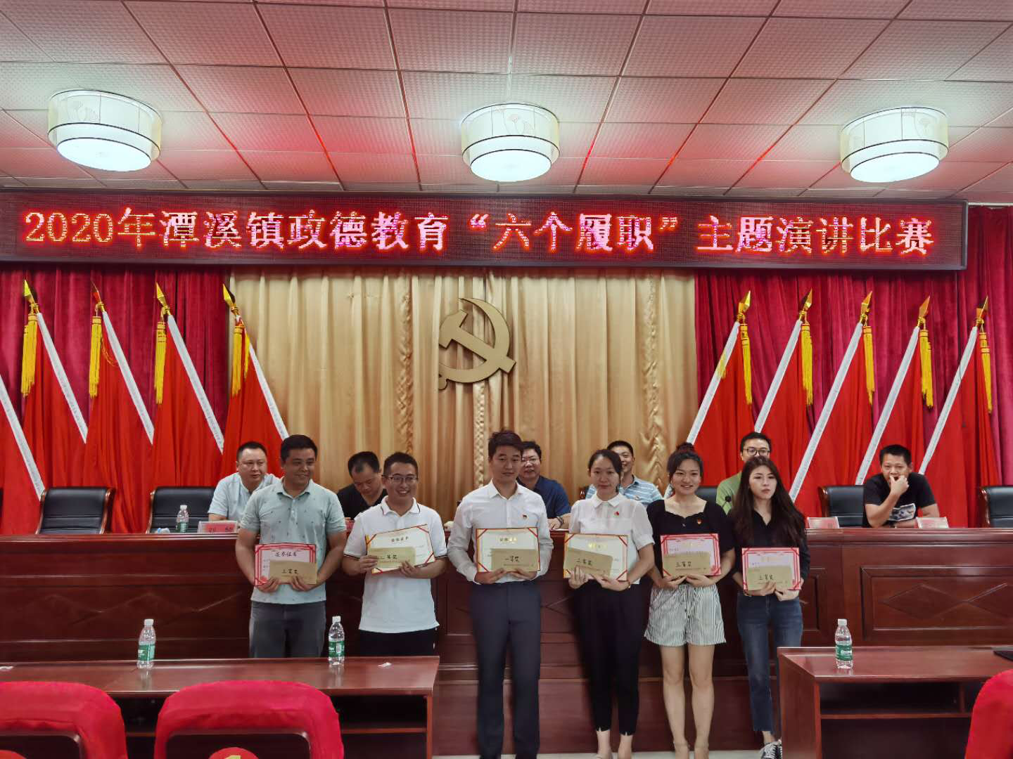 为持续巩固“不忘初心、牢记使命”主题教育成果,全面增强干部执政本领,9月11日上午,潭溪镇党委政府组织全体干部职工开展“六个履职”主题演讲比赛。比赛在紧张、激烈的氛围中角逐出一等奖一名、二等奖两名、三等奖三名、优胜奖若干名。通过此次演讲比赛,让我们对基层干部的责任与担当有了更深刻的感悟。