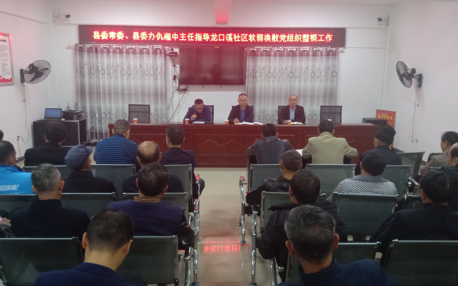 10月15日,县委党委、县委办主任仇湘中到大新镇龙口溪社区指导软弱涣散党组织整顿工作,以加强该社区级党组织建设,提高该社区党总支的政治领导力、思想引领力、群众组织力、社会号召力。