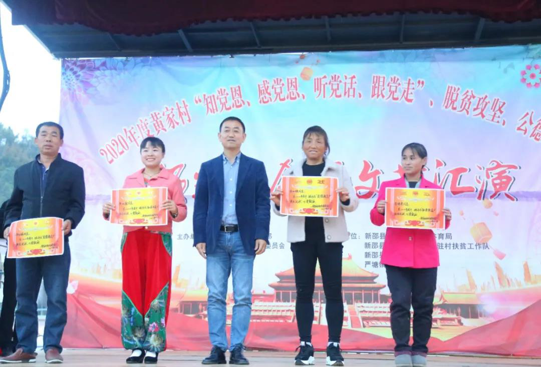 11月15日,严塘镇黄家村村民文化广场热闹非凡,喜气洋溢,该村在这里举行2020年度“知党恩、感党恩、听党话、跟党走”脱贫攻坚、公德教育颁奖大会暨文艺汇演。