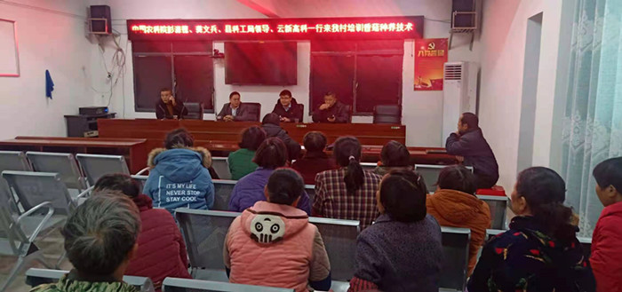 12月3日,中国农业科学院彭源德研究员、中国农业科学院龚文兵博士、新邵县科技和工业信息化局孙卫国领导和云新高科农业开发有限公司相关负责人一行来到迎光乡顺水村开展香菇种养技术培训,顺水村30余名贫困劳动力参加了培训。