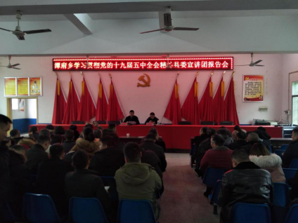12月18日下午,新邵县潭府乡举行学习贯彻党的十九届五中全会精神县委宣讲团报告会,县委宣讲团成员、县委党校副校长黄文良作宣讲报告,会议由乡党委副书记、乡长黄建桂主持,全体乡村干部、各部门负责人140余人参加会议。