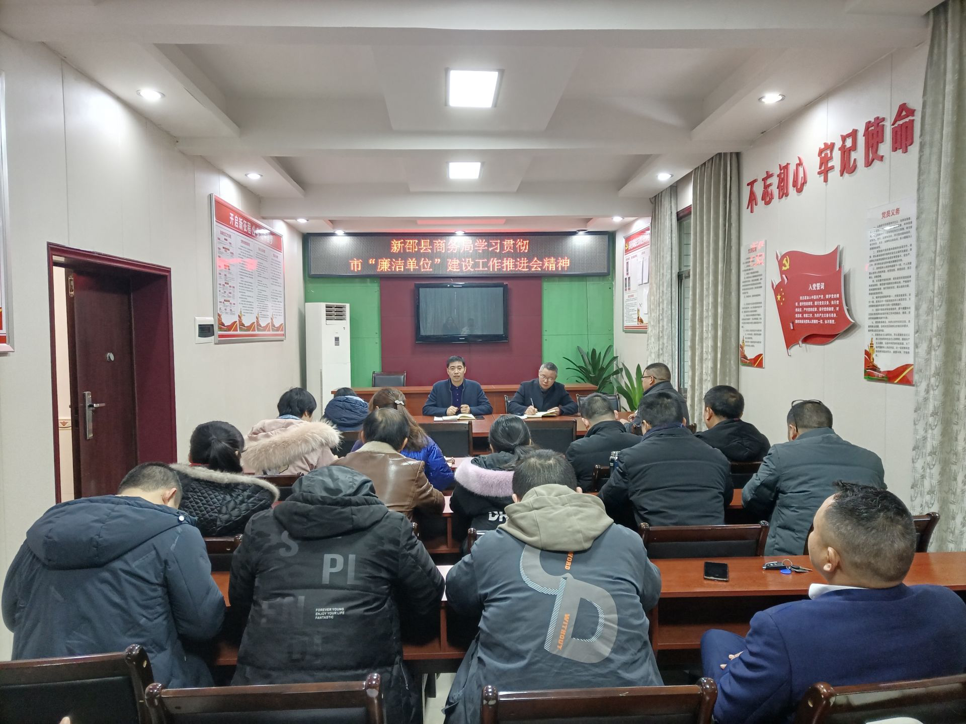 1月6日上午,新邵县商务局召开学习市“廉洁单位”建设精神推进会,传达贯彻邵阳市“廉洁单位”建设推进会议精神,进一步部署局内2021年度“廉洁单位”创建工作。