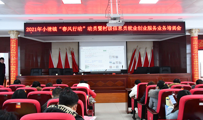 1月26日,新邵县小塘镇举行“春风行动”动员暨村级信息员就业创业服务业务培训会,市就业服务部部长彭绍峰,县就业服务中心主任李志成、镇人力资源保障分管领导和站长,各村社会保障信息员等参加。