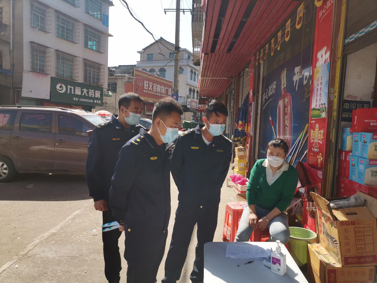坚守防控点位打造安全“长城”。在雀塘镇主街道,行政执法大队的队员们身穿制服、做好防护,采取定点、定岗、定员模式,对沿街商铺、农贸市场等防疫重点区域加强巡查监管,及时劝离流动摊贩,并查验健康码、行程码、场所码,提醒他们戴好口罩、做好个人防护,按时接种新冠疫苗加强针。