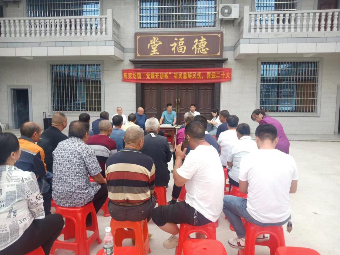 9月22日,陈家坊镇“党课开讲啦”—听民意解民忧,喜迎二十大活动在陈家坊镇藕塘村召开。陈家坊镇党委副书记、镇长蒋志华以“学党史强信念,转作风促振兴”为主题,为藕塘村的党员干部、群众上了一堂生动的党课。