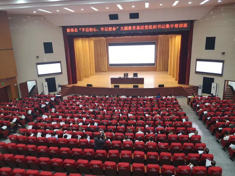 10月9日,新邵县举办“不忘初心、牢记使命”主题教育基层党组织书记集中培训班,全县所有基层党组织书记参加培训。其中,县直机关企事业单位党组织书记在县委大礼堂(主会场)参加集中培训;乡镇党委所辖基层党组织书记、乡镇中小学校和卫生院党组织书记在乡镇视频会议室(分会场)参加集中培训。