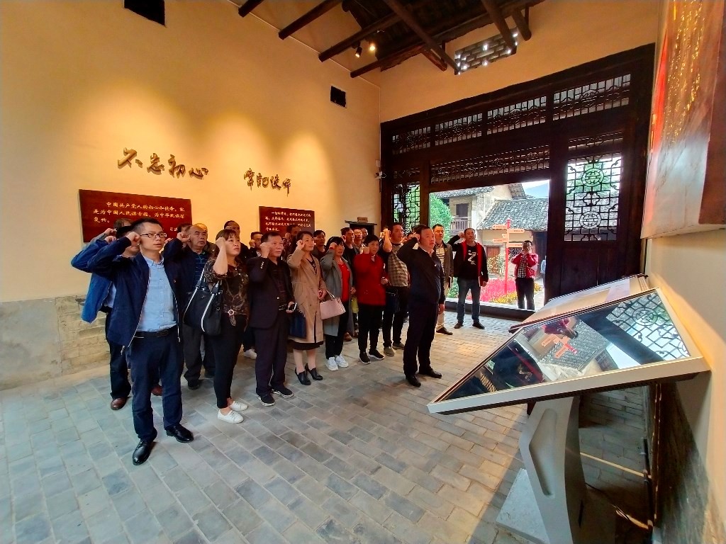 全体人员来到坐落在新邵县太芝庙镇龙山之脚的“新花院子”—中共湘西南特委旧址。大家在鲜红的党旗前,庄严肃穆,重温入党誓词;在现场的讲解下,认真聆听一段段可歌可泣的斗争事迹;在历史展厅中,深切感受革命先驱波澜壮阔的峥嵘岁月和老一辈共产党人用鲜血谱写的革命赞歌; 在视频展台前,“新邵七子”面对洪灾逆流而上的英雄故事,深深打动了全体参加人员,使大家产生了强烈的精神共鸣。参观结束后,县委党校老师还给大家上了一堂生动的专题党课——《龙山记忆 初心传承》。