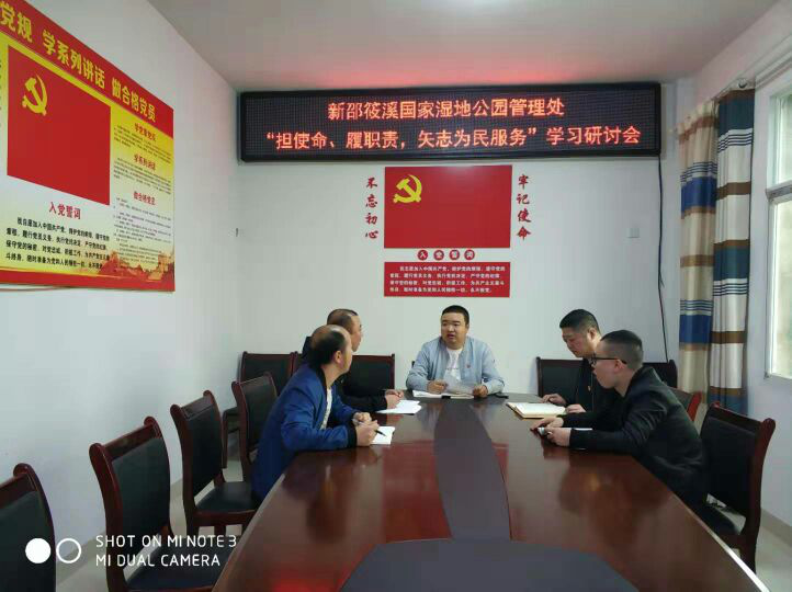 按照县委“不忘初心、牢记使命”主题教育安排部署及湿地公园管理处主题教育实施方案,10月24日-25日,湿地公园管理处开展了“担使命,履职责,矢志为民服务”专题集中学习研讨,管理处负责人傅翔主持召开,全体党员干部参加集中学习并讨论发言。