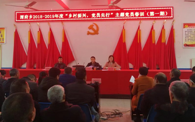 近年来,潭府乡扎实开展脱贫攻坚、公德教育、环境整治等工作,乡村面貌焕然一新,但农村环境的治理问题仍然不容乐观,人居环境整治已成为乡村振兴破题开局的第一切入点。乡村振兴,生态宜居是关键;环境整治,党员带头是重点。为加强农村党员队伍建设,助推乡村振兴战略全面实施,新邵县潭府乡创新举办了“乡村振兴,党员先行”主题党员春训,邀请县委党校副校长李安平专题授课《乡村振兴,党员先行》,详细解读乡村振兴战略并对党员如何发挥先锋模范作用提出明确要求。并通过宣读《潭府乡2019年农村人居环境卫生整治党员倡议书》、党员代表承诺发言、党员当场签订提交《潭府乡2019年农村人居环境卫生整治党员承诺书》、村书记发表一分钟“人居环境整治攻坚宣言”等,打响了乡村振兴战略第一场硬仗!