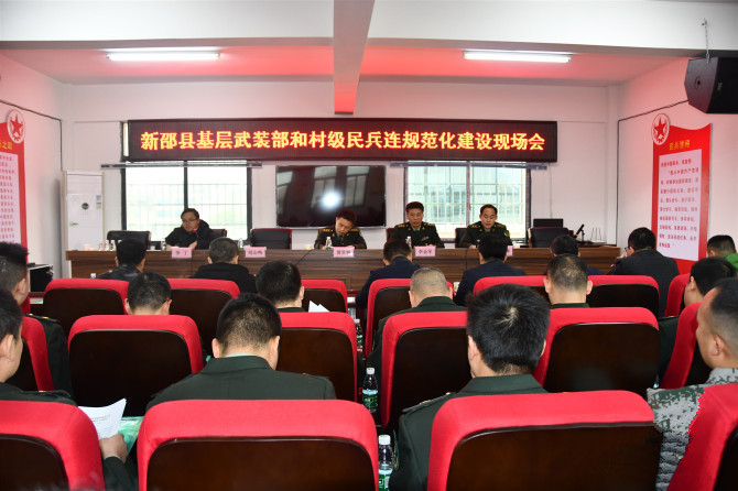 4月2日,新邵县基层武装部和村级民兵连正规化建设现场会召开,邵阳军分区动员处处长曾贤辉,新邵县委常委、县人武部政委李金军及各乡镇党政主要负责人、乡镇武装部长参加。