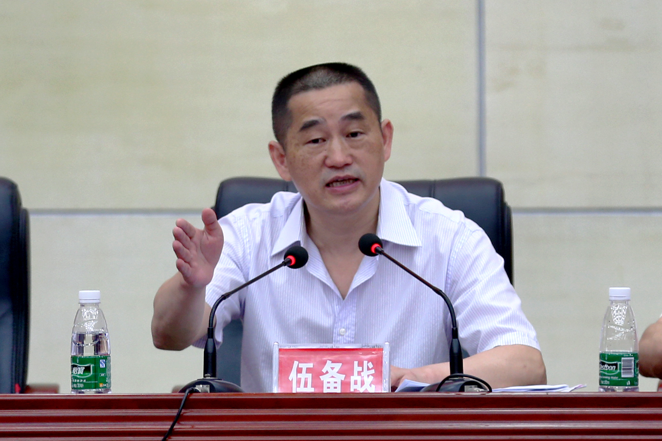 图为县委书记伍备战在会上发表讲话