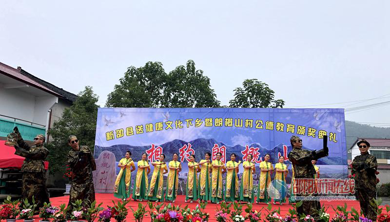 10月18日,新邵县坪上镇朗概山村热闹非凡,县送健康文化下乡暨朗概山村公德教育颁奖典礼在该村沙坪小学内举行,县、镇两级文艺精英团队为村民带来了一场精彩绝伦的文化“大餐”。
