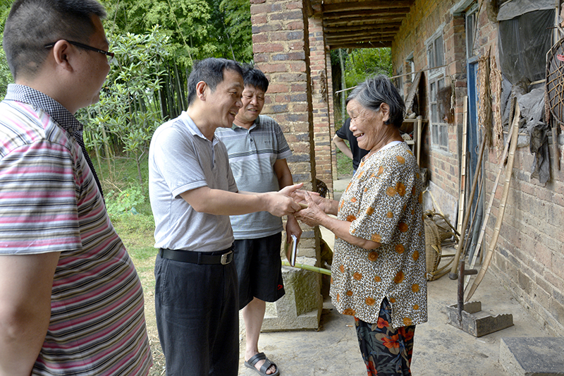 图为县委常委、组织部长、统战部长罗万方正在与困难党员亲切交谈
