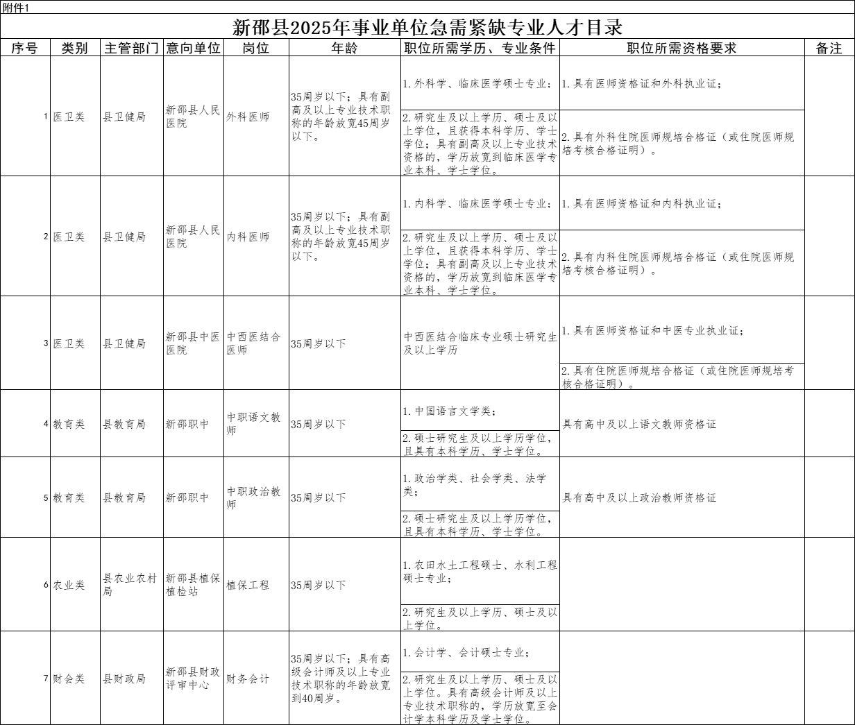 1.《新邵县2025年事业单位急需紧缺专业人才目录》