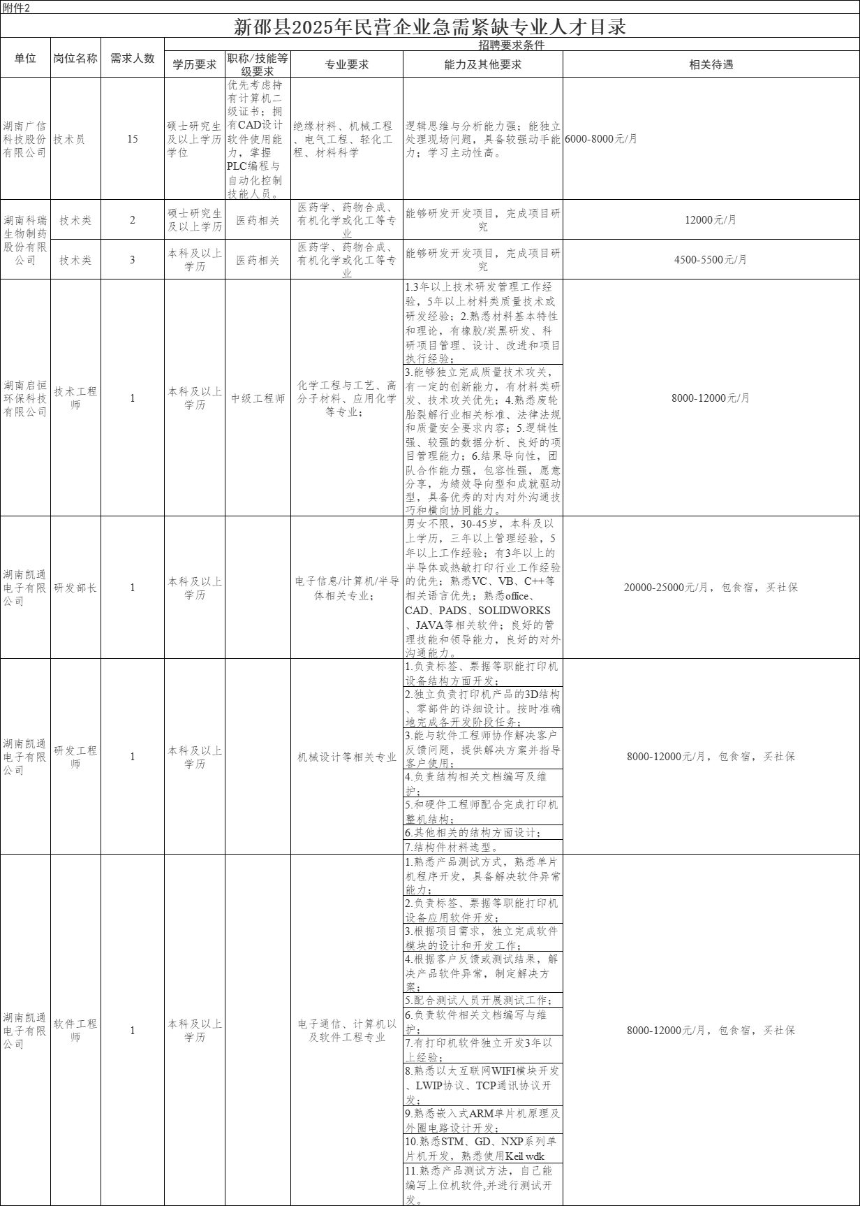 2.《新邵县2025年民营企业急需紧缺专业人才目录》
