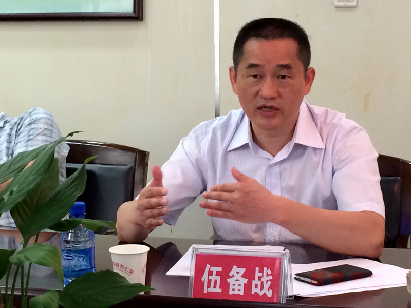 图为县委书记伍备战汇报活动开展情况