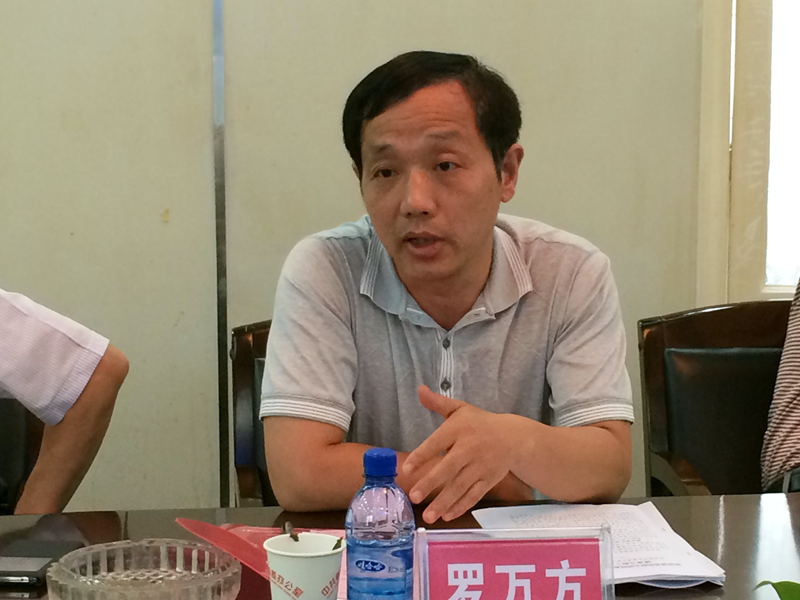 图为县委常委、组织部长罗万方主持汇报会