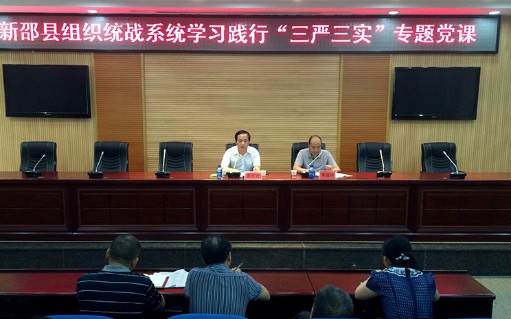 6月25日上午,新邵全县组织统战系统单位的班子成员集中在县党校接受了一堂“三严三实”专题党课教育,该县县委常委、组织部长、统战部长罗万方结合工作实际就“三严三实”主题进行了授课。