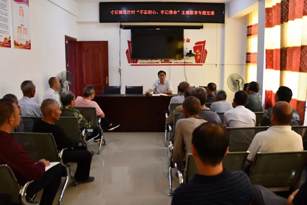 9月26日,县委书记阳晓华来到寸石镇花竹村,为该村党员上“不忘初心、牢记使命”主题教育专题党课。