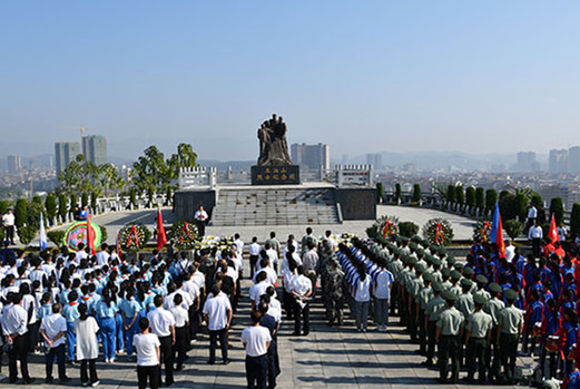 郁郁青柏掩忠骨,烈烈英魂诉长风。今年9月30日是全国第6个烈士纪念日,为铭记烈士丰功伟绩,弘扬烈士革命精神,激发广大群众爱国热情,新邵县委、县政府今天在五泊山烈士纪念园举行革命烈士公祭日活动。