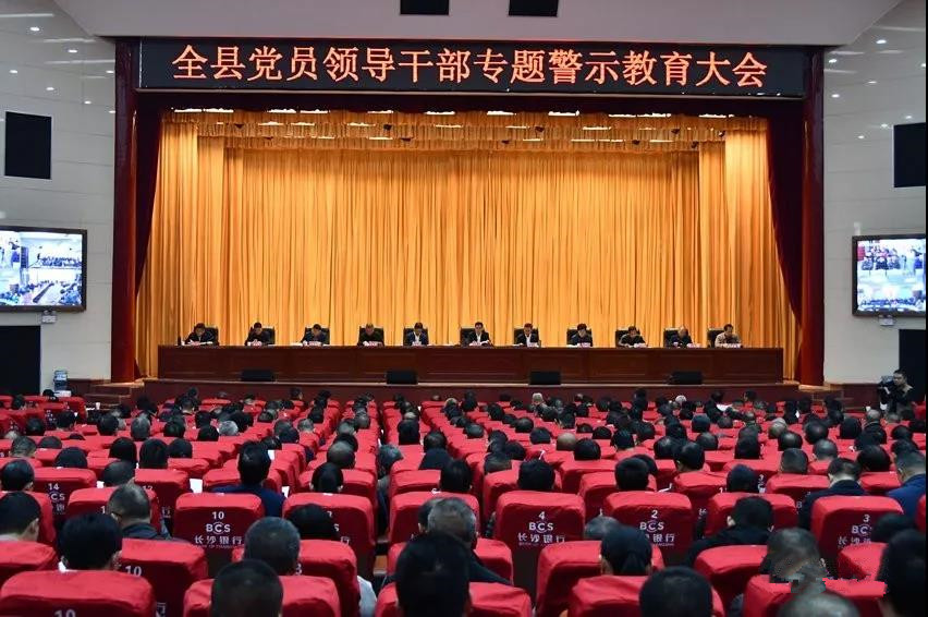 11月21日,新邵县召开全县党员领导干部专题警示教育大会,坚决贯彻落实省委、市委的统一部署,动员全县各级党组织和党员干部,以“不忘初心、牢记使命”主题教育为契机,以身边典型案件为反面教材,开展警示教育和以案促改工作,不断推动全面从严治党向纵深发展。