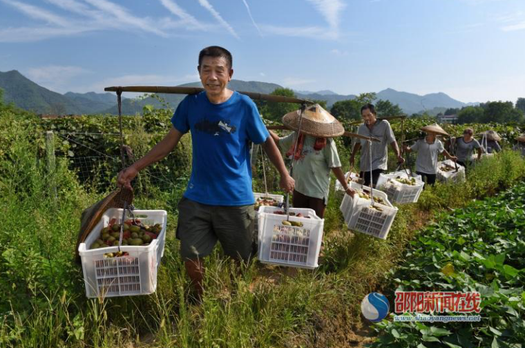 8月18日早上,位于新邵县潭府乡中潭村的玉辉农林猕猴桃基地迎来丰收。