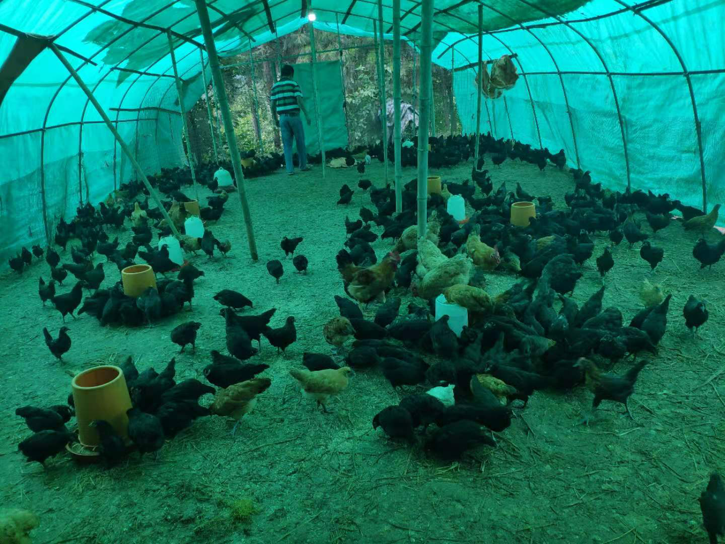 李高云没有气馁,打算接着干。2017年下半年,他从亲朋好友那借了一笔钱,对鸡场进行全方位的消毒后,又购买了4000只鸡仔。在技术专家指导下,他定期对鸡场进行消毒,给所有鸡都注射了疫苗。为了补贴家用,李高云的妻子李雪英还到袋子厂打零工,用她的工资补贴家用和鸡场的一部分开支,李高云则一心一意守在鸡场。功夫不负有心人,这一年的鸡群茁壮成长,销售也比较可观。“鸡司令”终于打了个漂亮的“翻身仗”,不仅把贷款还了,还顺利脱贫,日子越过越有奔头。