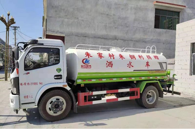 朱钢利不但主动帮扶村里贫困户,还热心公益事业。2017年他为了村里的治安,特为驻村“一村一辅警”捐资7万多元购买了一辆治安巡逻车;去年,他为了镇里的环境卫生又捐资21万元购买了一辆洒水车送给镇环卫所。