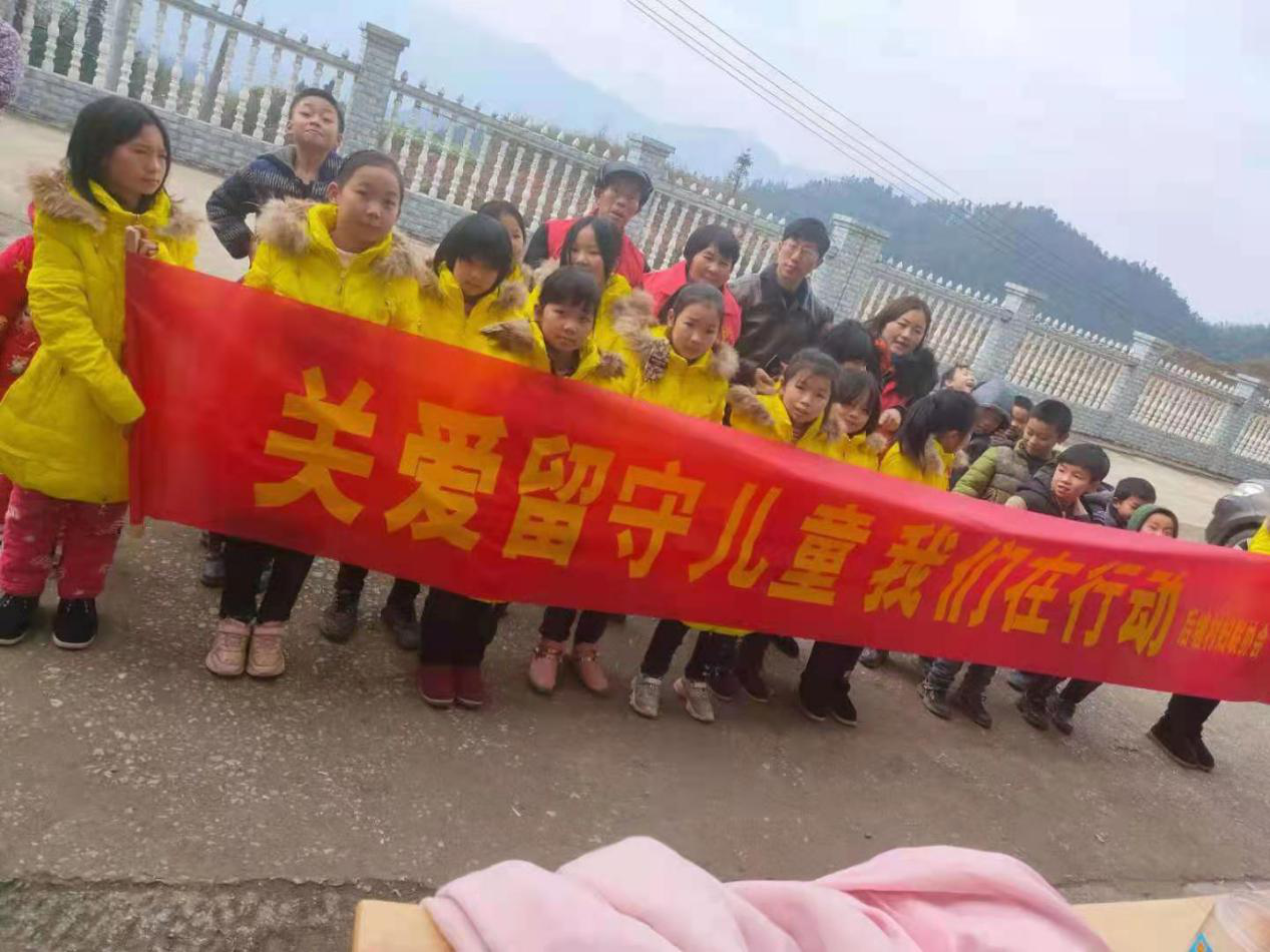 图为邓易花在关爱留守儿童