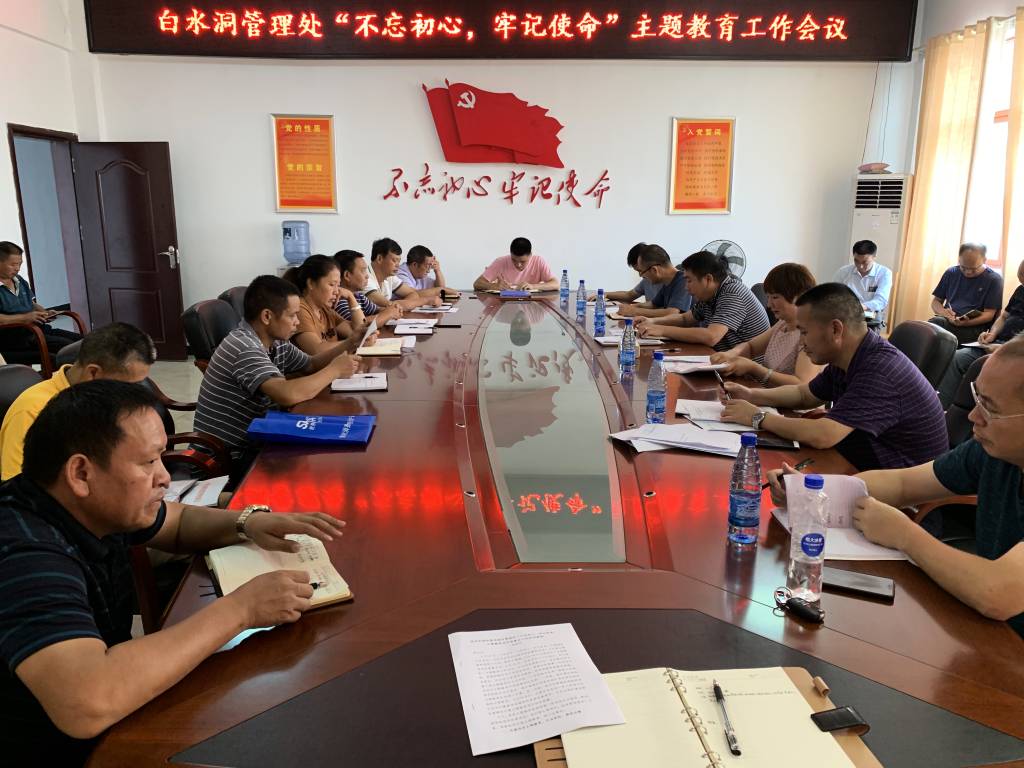会议由白水洞服务中心负责人罗宇晟同志主持,白水洞管理处负责人周晓明作动员讲话,县委主题教育指导组第一指导组龚玉冰到会指导,白水洞管理处、白水洞服务中心全体党员及各村支部书记等参加会议。