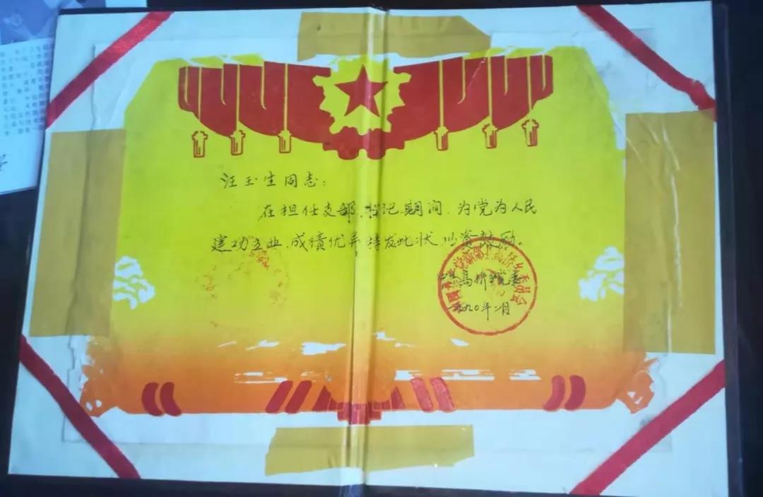 今年88岁的汪玉生,1954年入党,同年开始担任汪家村会计工作,1962年任村支部书记,一直干到1990年。在担任村干的30多个年头里,他和支部一班人带领村民自力更生,艰苦奋斗,留下了宝贵的精神财富,也留下了很多佳话。1963年,村里率先建起了高标准机耕道;1969年开荒50余亩,建起了园艺场,每年为集体增收5000元左右;1972年,通过在省里争取,从五七八处接线,在周边几个村中最早通了高压电;从1973年开始,连续多年带领村民植树造林,共种植杉树、松树和梓树8000亩,如今价值不下1000万元;1982年,建起了扬程109米的电排,从资江里抽水,让本村和邻近村1000多亩农田实现旱涝保收……由于工作出色,汪玉生曾连任三届县党代表,多次被评为县、镇优秀共产党员和先进工作者。1972年,他参加了湖南省先代会,受到了时任省委第一书记华国锋的接见。