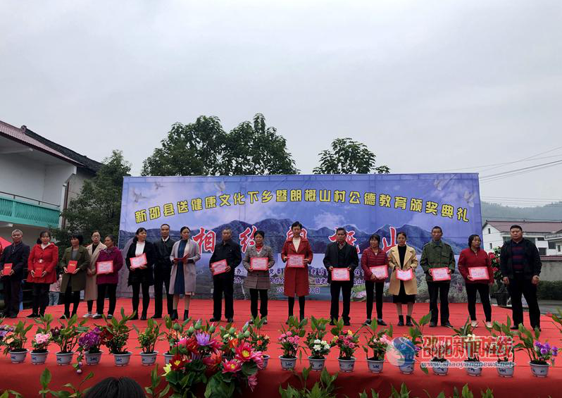 10月18日,新邵县坪上镇朗概山村热闹非凡,县送健康文化下乡暨朗概山村公德教育颁奖典礼在该村沙坪小学内举行,县、镇两级文艺精英团队为村民带来了一场精彩绝伦的文化“大餐”。