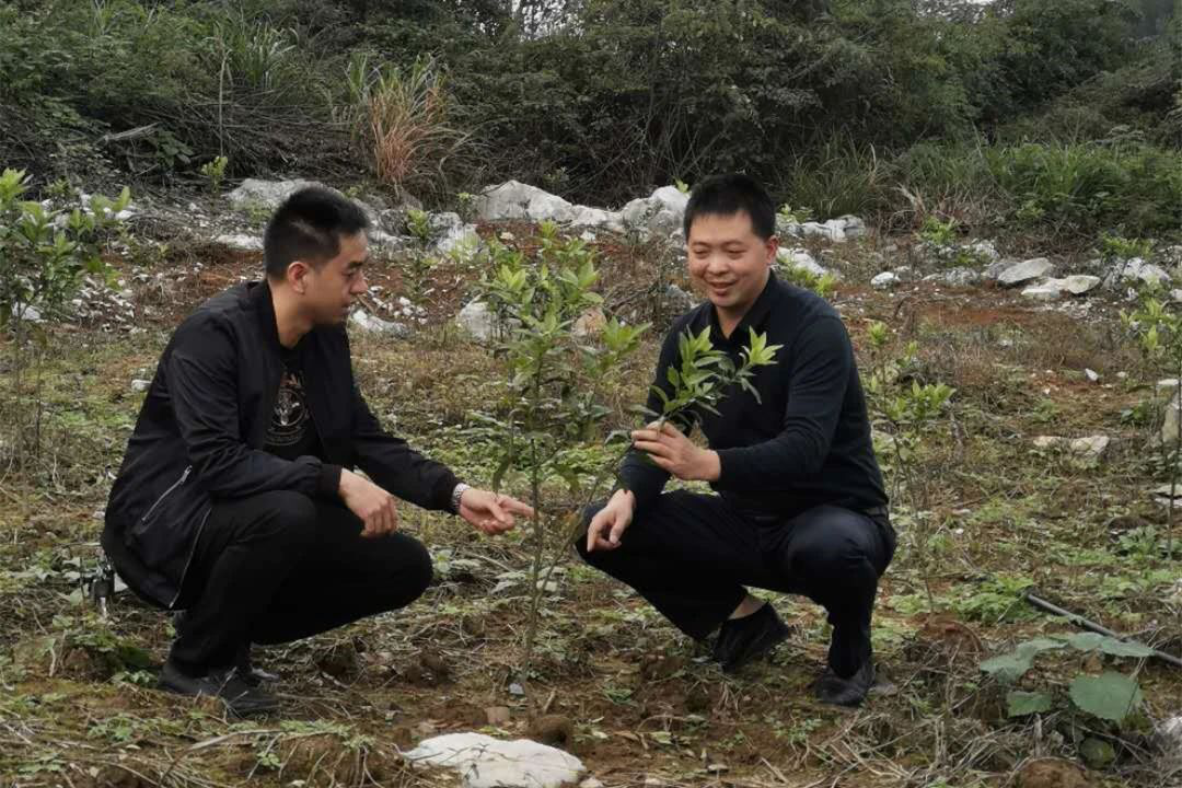 蒋志华(右)到兴旺村指导沃柑产业