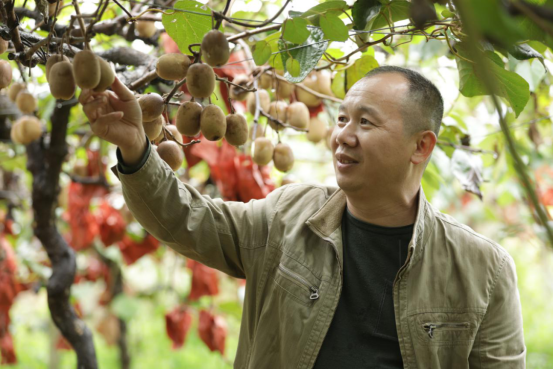 在新邵县谈及猕猴桃产业就不得不提扶贫带头人李玉阳。因为从小家境贫困,李玉阳高中毕业就外出闯荡。闯出一番事业后,李玉阳发现家乡还有不少妇女和老人留守,生活水平不高。为了带动父老乡亲脱贫致富,2012年李玉阳“弃商从农”,克服万难将“水果之王”猕猴桃引进到家乡种植,为让猕猴桃更高端、原生态,在果子生长过程中,李玉阳更是舍不得